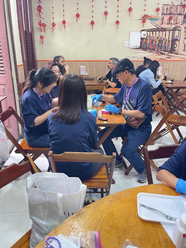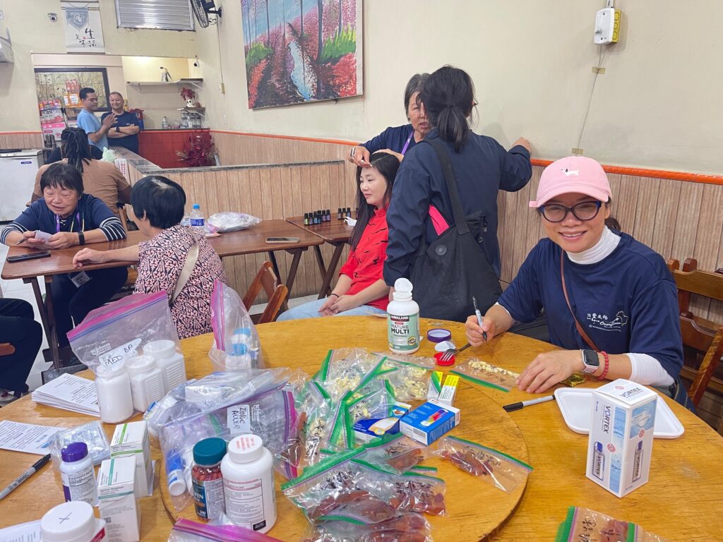 We visited many shops and invited many to come see us in the free clinic in the afternoon. The free clinic was held at a well-known Chinese restaurant. We went there for lunch, and immediately started venue preparation afterwards. Sixteen patients came to have their blood pressure and blood sugar checked. They saw Dr. Dorothy Wong and most of them also enjoyed the herbal massage by Elaine Huang.