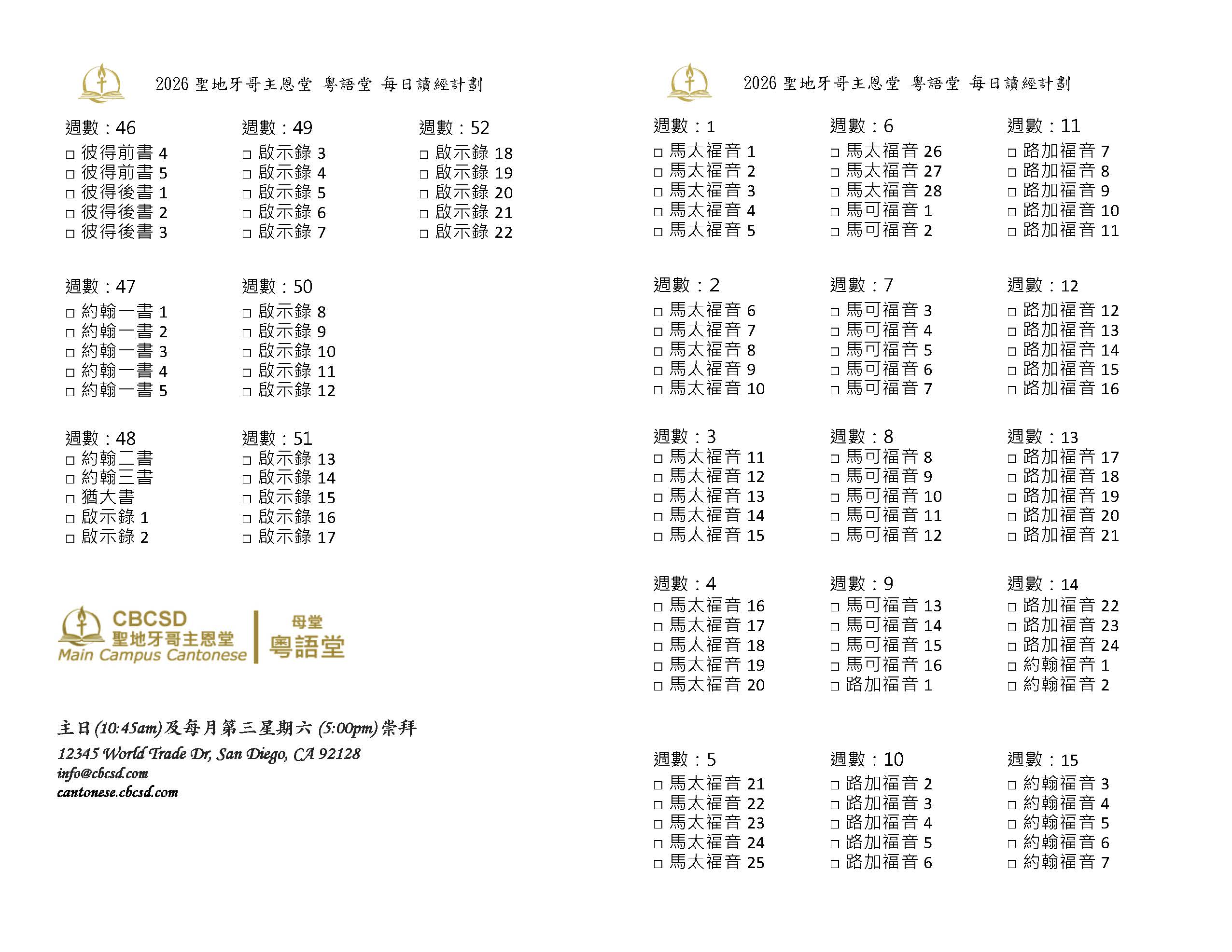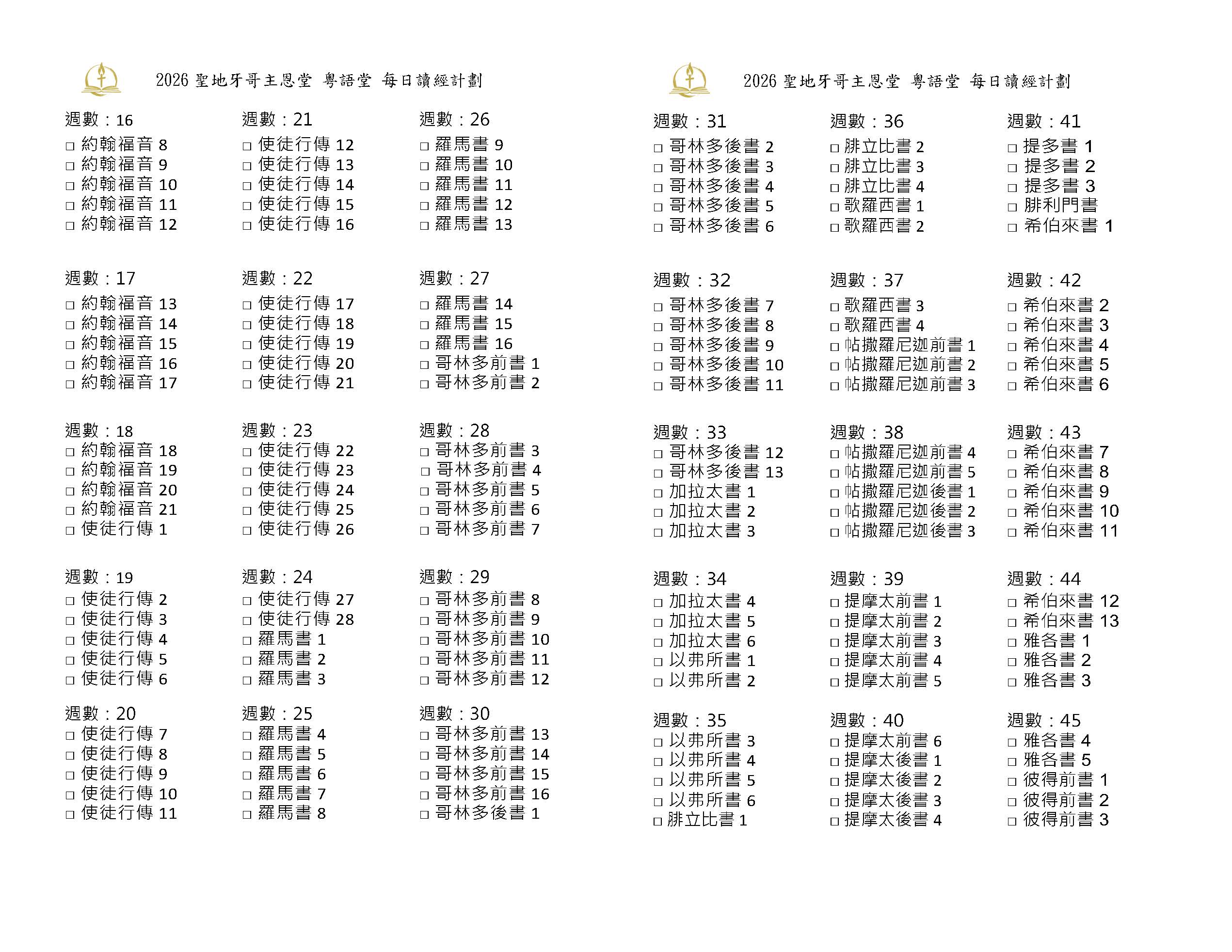 2026 讀經計劃 Bible Reading Plan